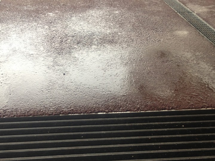 Nacharbeiten einer Mittelnaht in der Farbasphaltfläche, Institut Hohenstein.